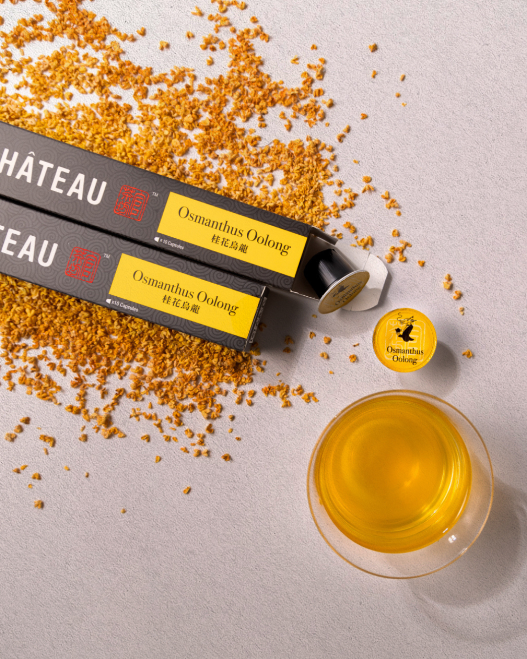 TEA CHÂTEAU 將中醫潤燥智慧融入茶飲,透過兩款主推茶品:枇杷雪梨茶、桂花烏龍