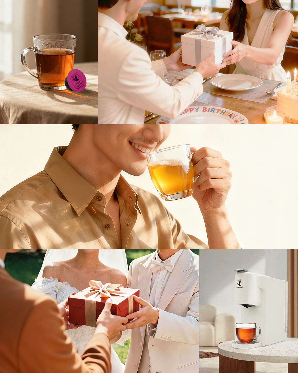也懂每位收禮者的喜好。只需一部茶機、一顆茶囊,