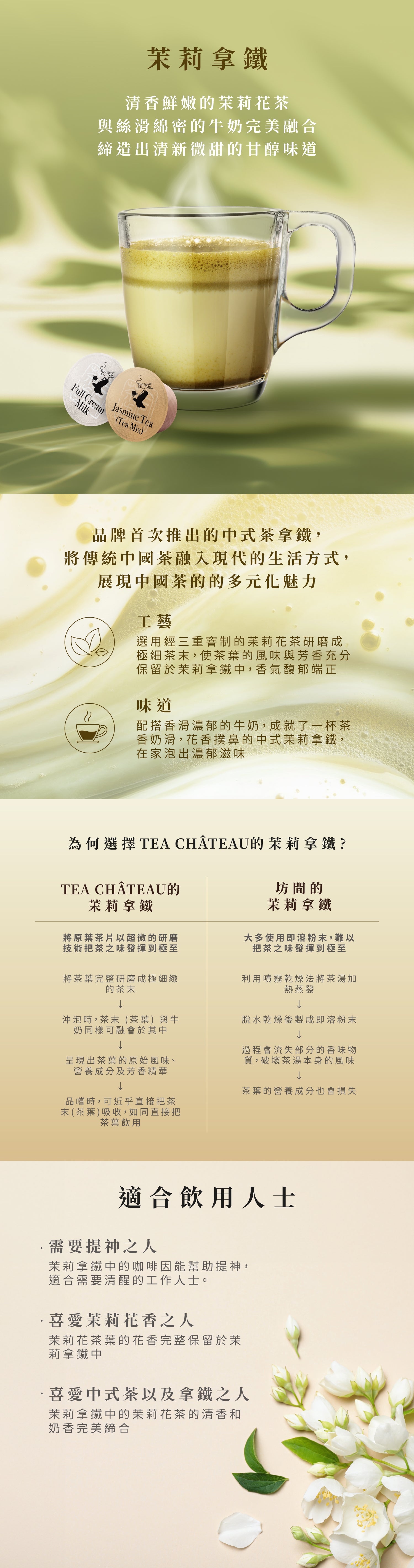 | 材料 | 膳食纖維, 茉莉茶粉, 砂糖, 全脂牛奶粉, 植脂末 |